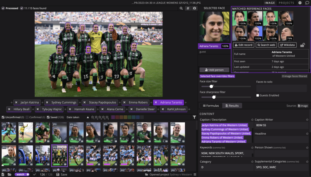 When shooting sports, I will find player headshots on the teams websites ahead of time and load those into Caption Pro. This means when it comes to shooting the match I can be confident that Caption Pro will recognise everyone on the field.